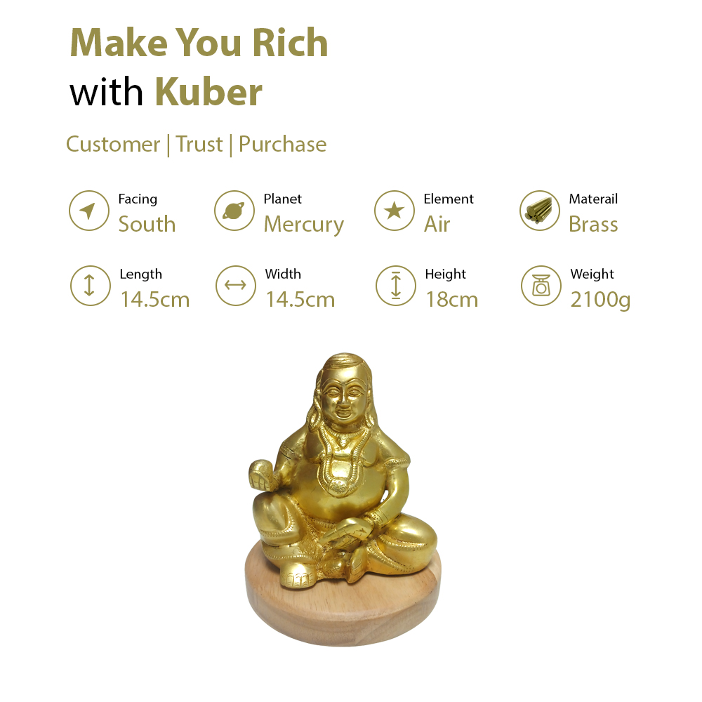 Brass Lord Kuber Idol for Wealth Attraction, Prosperity & Business Success
