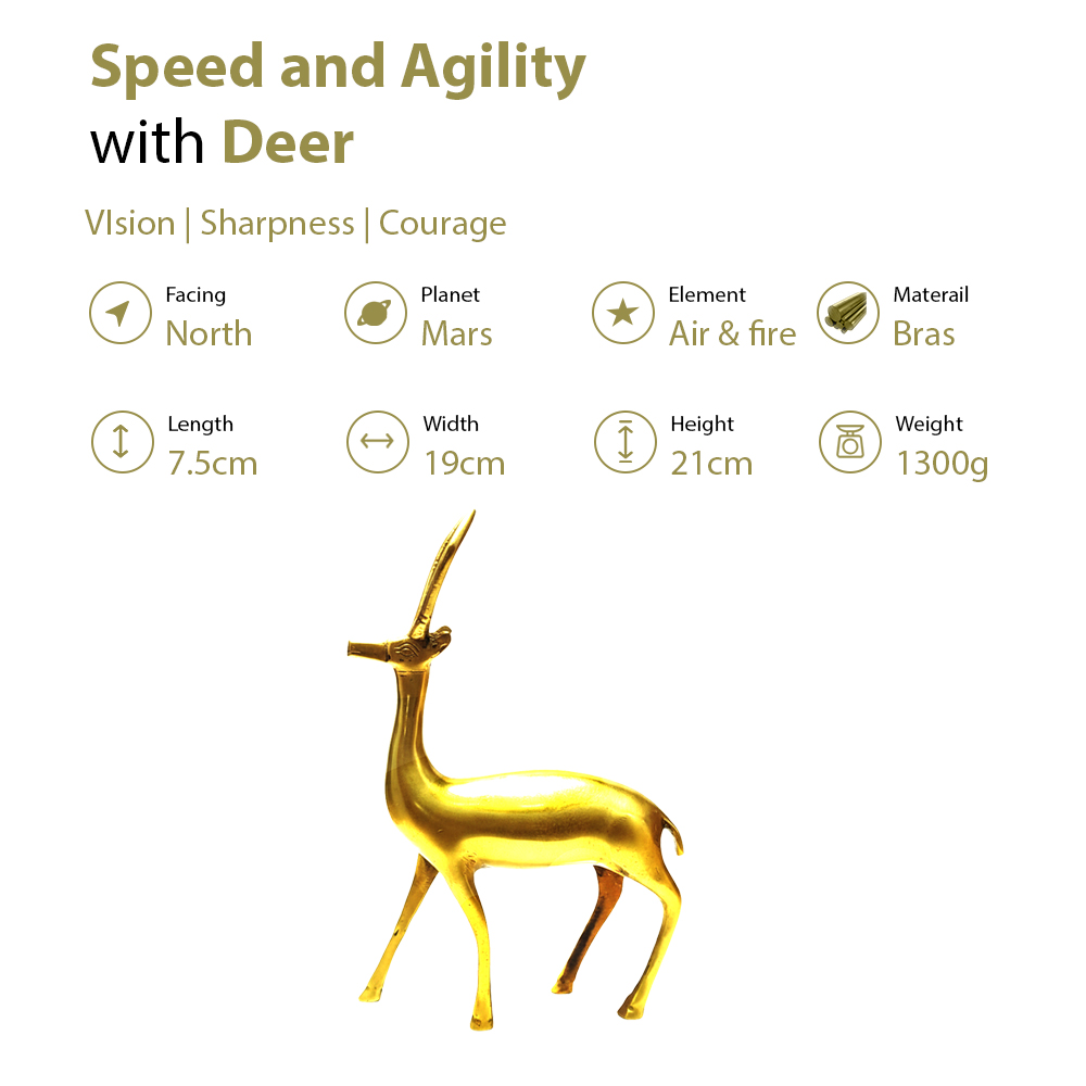Elegant handcrafted brass deer statue symbolizing speed and agility